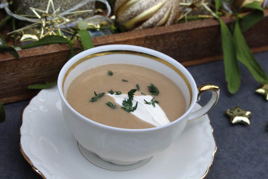 Auch dieses Jahr habe ich wieder ein gesundes Drei-Gänge-Weihnachtsmenü vorbereitet. Die Vorspeise habe ich heute für dich: eine cremige Maronensuppe mit Birne.